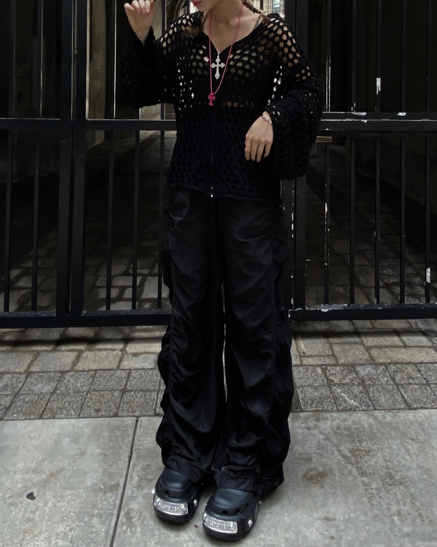 ENCRYPTED CROCHET ZIP-UP (ASH)