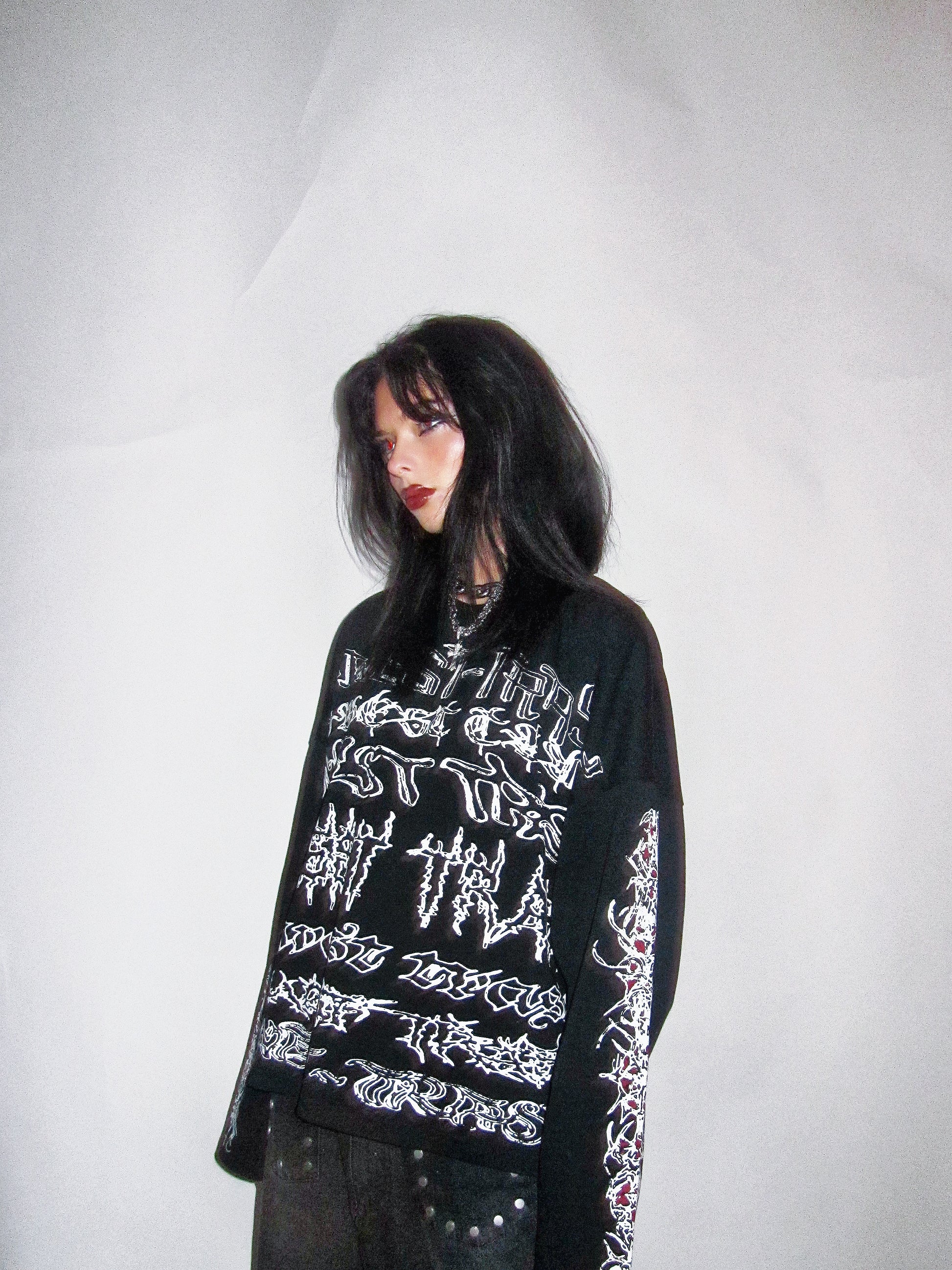 PIERCED BLACKMETAL LONG SLEEVE TOP - ASH